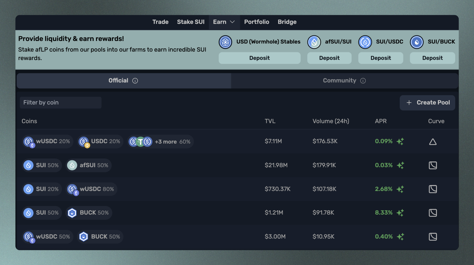 초기에는 이러한 풀이 SUI 및 afSUI 토큰을 발행하지만, 향후 다른 토큰도 발행될 것입니다.
