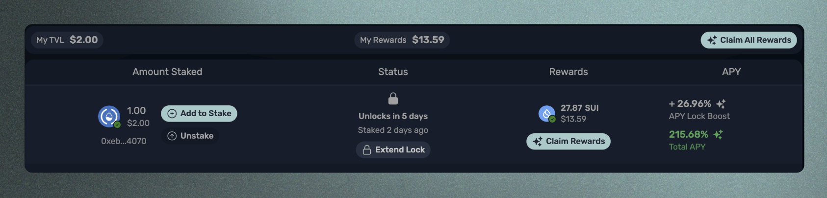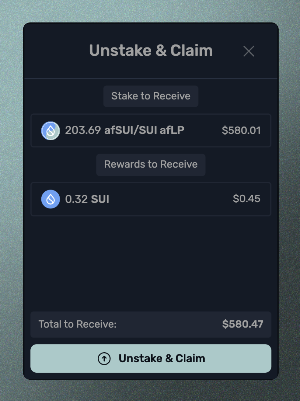 스테이크 해제 시 아직 청구되지 않은 모든 보류 중인 보상도 동시에 청구하여 포지션이 완전히 실현되고 LP 토큰과 모든 보상이 지갑으로 전송되도록 합니다.