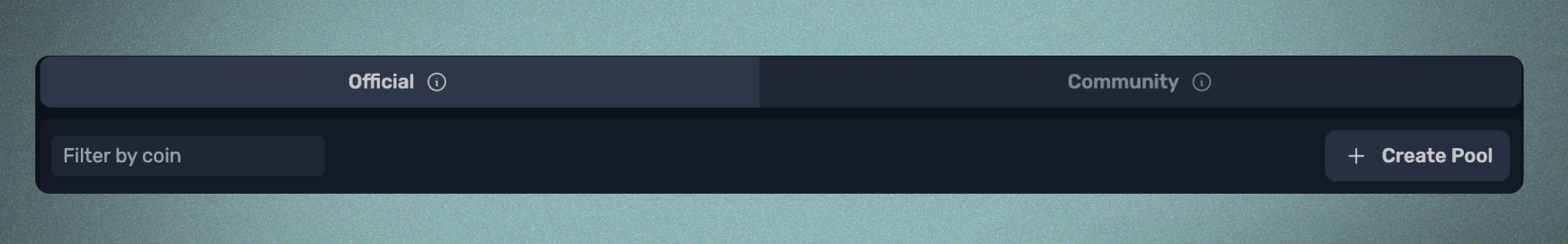 풀을 생성하려면, Pools 탭으로 이동하세요.