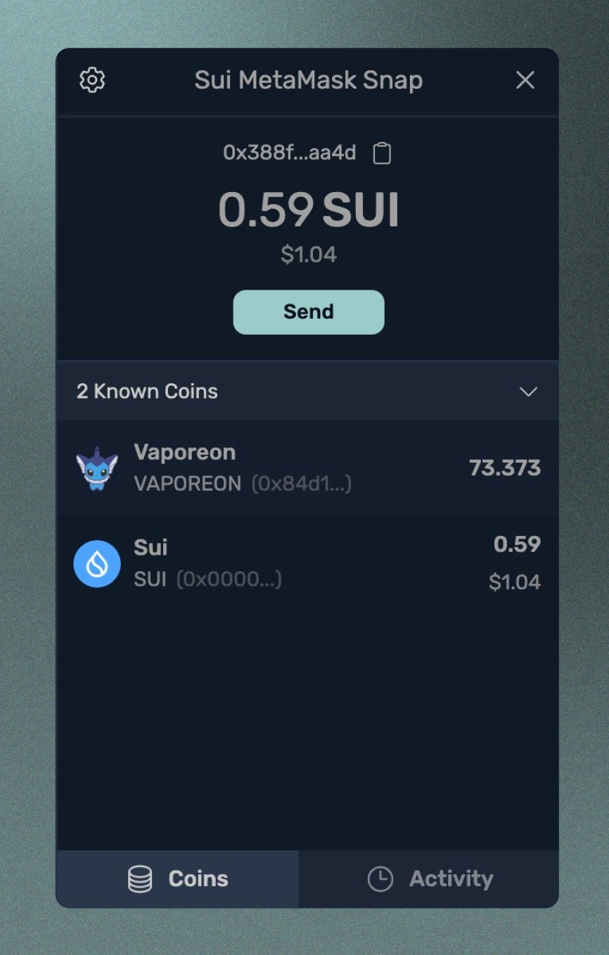 Aftermath에서 Metamask 지갑을 사용하고 싶은 사용자는 Sui Metamask Snap을 설치하여 이를 할 수 있습니다. Snaps는 Metamask에 추가 기능을 제공하는 서드파티 개발자가 개발한 응용 프로그램으로, Sui와 같은 EVM 이외의 네트워크에 연결하는 등의 추가 기능을 제공합니다. 자세한 내용은 metamask Snaps FAQ를 참조하십시오.