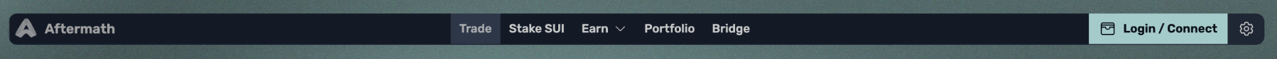 시작하려면 Aftermath dApp을 실행하고 화면 상단의 내비게이션 바 오른쪽에 있는 로그인 / 연결 버튼을 클릭하세요. 로그인 / 연결을 클릭하면 지갑 연결 메뉴가 나타납니다.